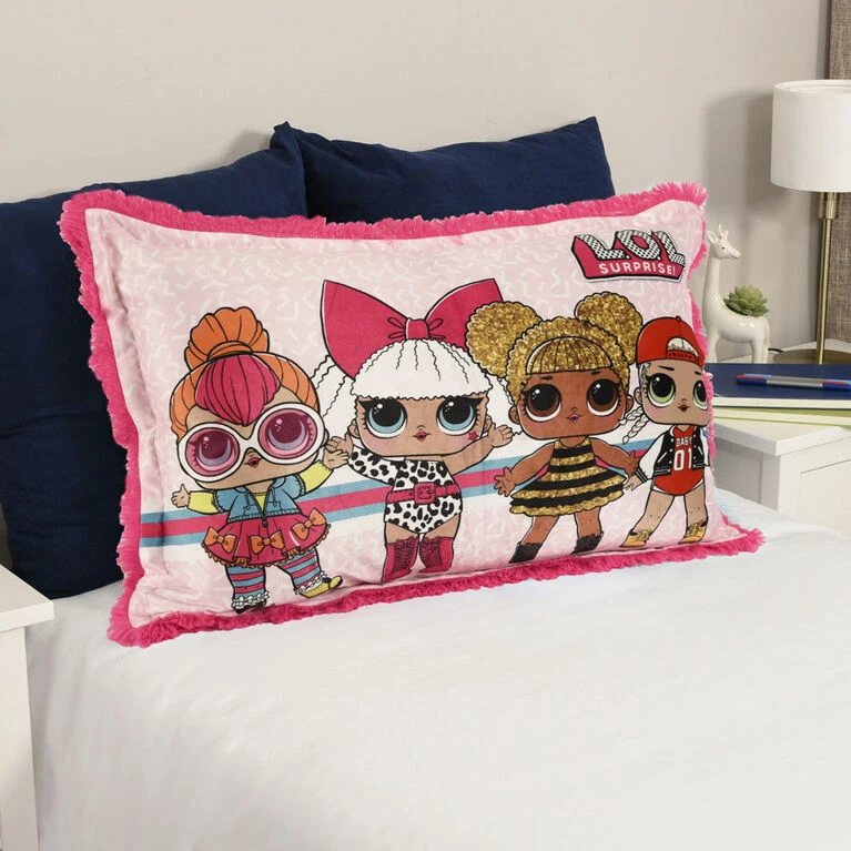 Get cozy with this bright and jumbo funky fur pillow! With a vibrant design of your favourite characters on the front, and a shaggy faux-fur backside, this cozy cushion is sure to be a favourite! This cloud-like pillow is perfect for lounging during movie nights, great for car rides, sleepovers and for extra comfort while sleeping at night.