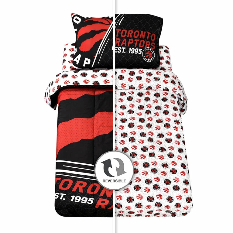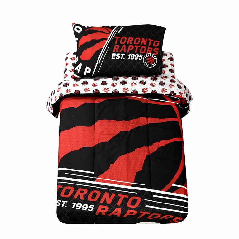 All you need to deck out that Raptors Fan’s bedroom is in this Bed in a Bag! There will be no mistaking who you cheer for with this logo inspired bedding. The best part? One bedding set, two looks! One side of the comforter is with the iconic Raptors Logo, the other side is a checked logo pattern. Go Red and Black!