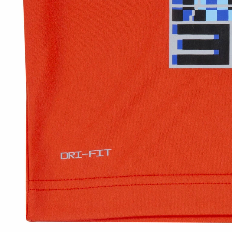 This 2-piece performance set by Nike is an easy way to outfit the smallest athletes in coordinated style, made for play. The graphic tee is made of interlock knit fabric enhanced with quick-drying, moisture-wicking Dri-FIT technology to help keep kiddies cool and dry at play. The matching shorts are made of soft tricot knit fabric, has contrast inset panels and a stretch waistband for a comfy fit.