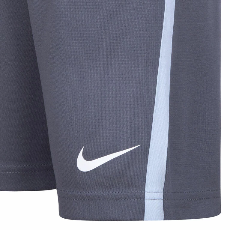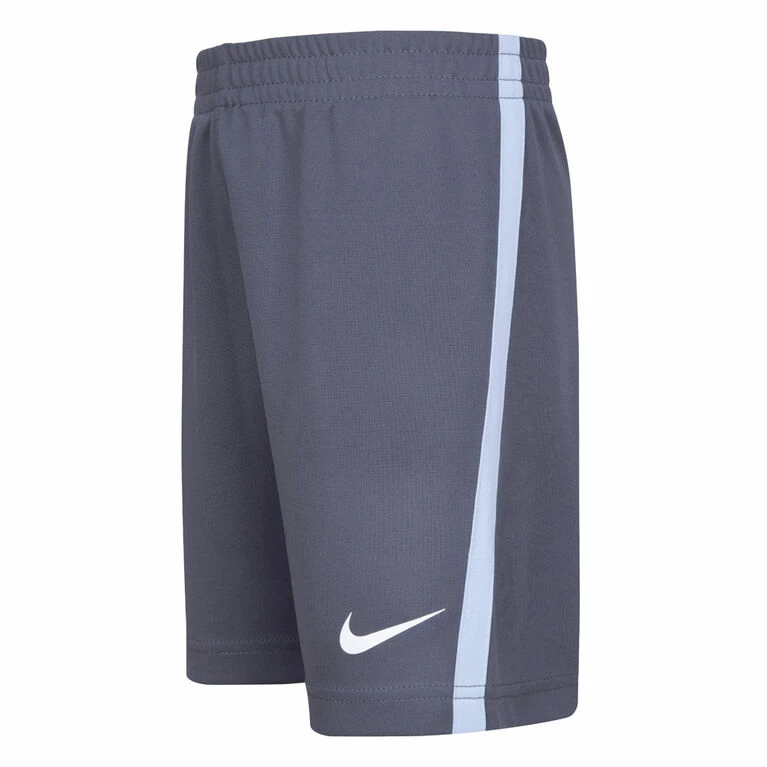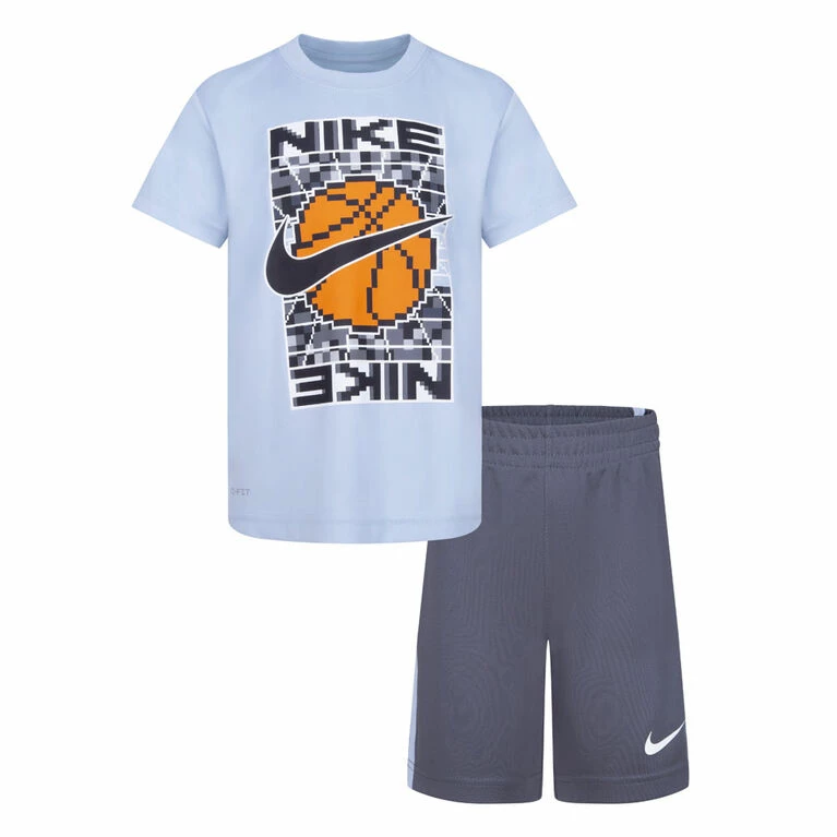 This 2-piece performance set by Nike is an easy way to outfit the smallest athletes in coordinated style, made for play. The graphic tee is made of interlock knit fabric enhanced with quick-drying, moisture-wicking Dri-FIT technology to help keep kiddies cool and dry at play. The matching shorts are made of soft tricot knit fabric, has contrast inset panels and a stretch waistband for a comfy fit.